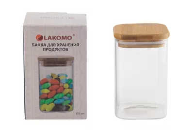 Банка для хранения дерев. крышка 620мл, h=12см, квадратная в п.у.