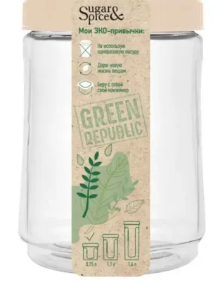 "Green Republic" Банка для хранения 1,6л с закруч. крышкой, цв.лён