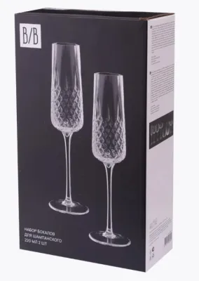 "Анжела" Набор бокалов для шампанского 2шт, 190мл оптика
