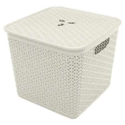 "Keeplex" Корзина для хранения "Rattan" с крышкой 21л, 30х30х28см, цв.белое облако
