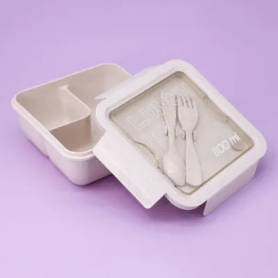 Ланч-бокс "Square" 1,1л со столовыми приборами, 17х7х7см, цв.бежевый
