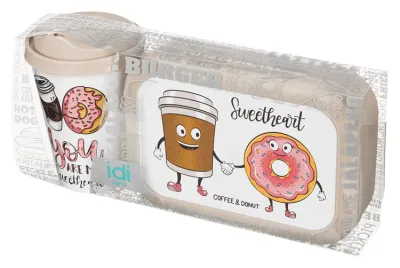 Набор стакан 420мл и ланч-бокс 0,85л "Izi-go. Coffee&Donut" пластик