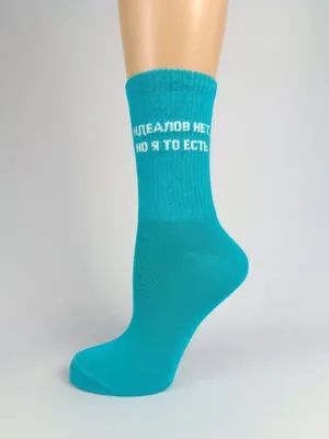 Носки "Идеалов нет, но я то есть" цв.бирюзовый, размер 38-40