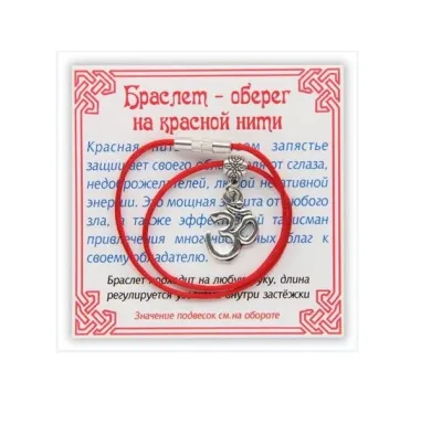 Оберег на красной нити "Ом" серебряный