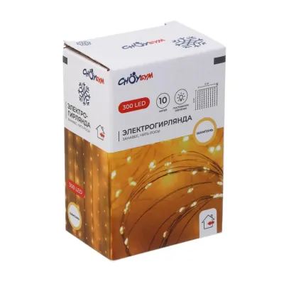 Гирлянда электрическая 10м, 100 LED ламп, цв.теплый белый