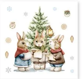Салфетки бумажные "Зайцы у елки" 33х33см, 20шт