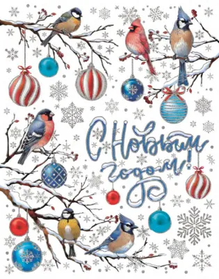 Наклейка для интер."Дед Мороз на санях" 30х38см