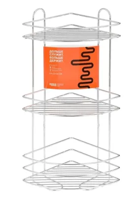 Полка для ванной, угловая, 3 секции 23х23х58см, цв.хром