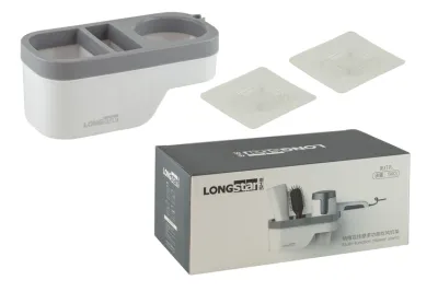 "LONGSTAR" Полка для ванной настенная с клеевым креплением 12,4х8,4х11см, цв.белый
