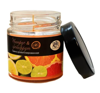 Свеча в банке "Цитрус и грейпфрут" 25ч 8х7см