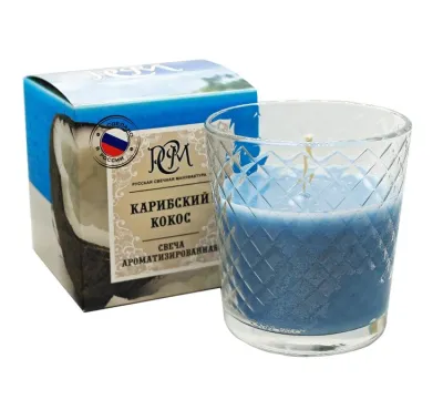 Свеча в стекле "Карибский кокос" 30ч 8,4х7,8см