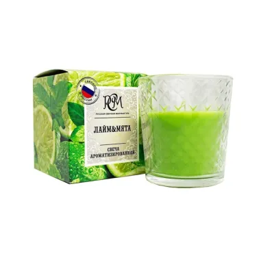 Свеча в стекле "Лайм и мята" 30ч 8,4х7,8см