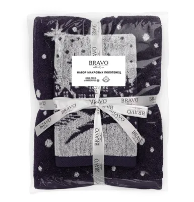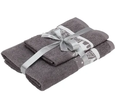 Набор махровых полотенец "Зимний лес" 2шт, 50х70см, 70х130см, цв.серый