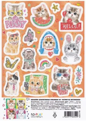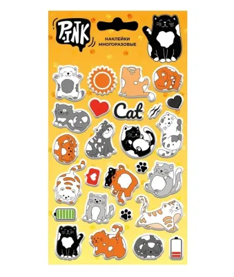 Наклейки "Котики" 16шт. А5, цв.персиковый
