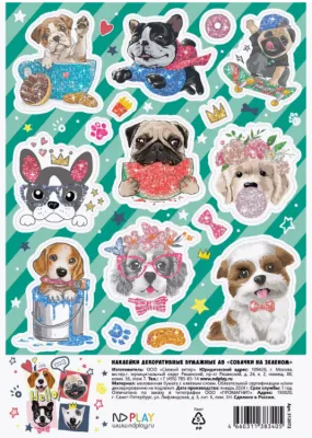 Наклейки "Собачки" 16шт. А5, цв.зеленый