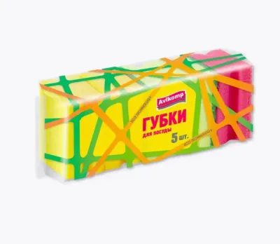 "AVIKOMP" Набор губок для посуды "Eco Technology" профилированные 5шт. 8,5х6,5х4,5см