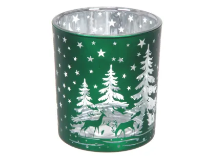Подсвечник "Снежный лес" 8,5х10см цв.изумруд
