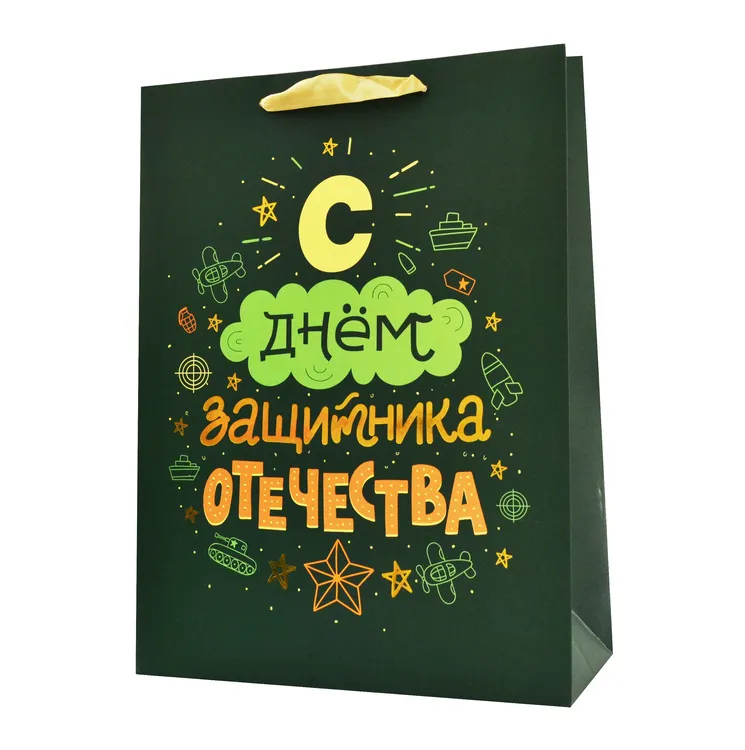 "23 февраля" Пакет бумажный "С днём защитника" 40х30х12см