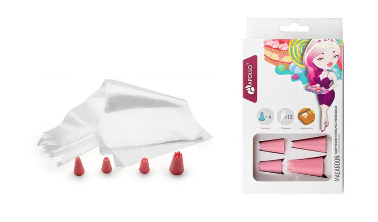 "Apollo" Macaroon" Набор кондитерских мешков 12шт. с насадками 4шт.