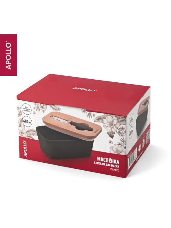 "Apollo" Palmiro" Масленка с ножом для масла 15,5х6х9,5см, цв.черный
