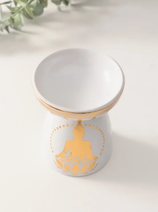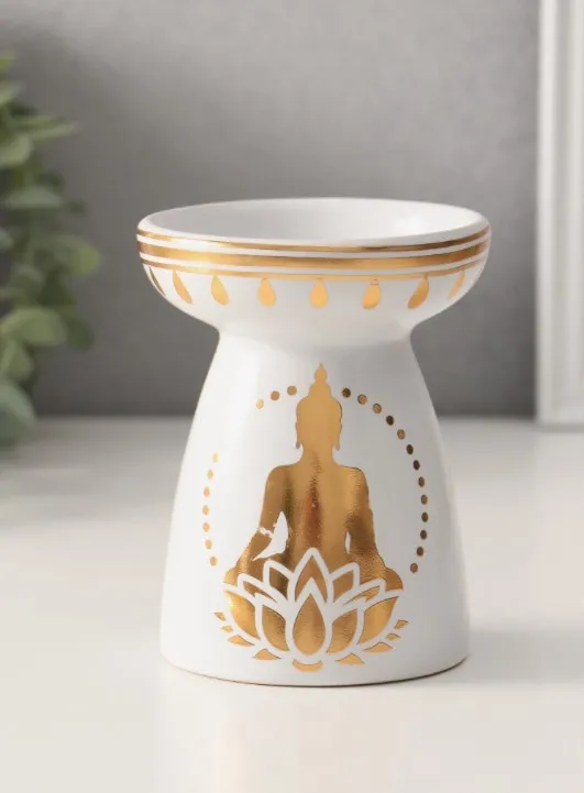 Аромалампа "Будда и лотос" 11,8см, цв.белый, золотой