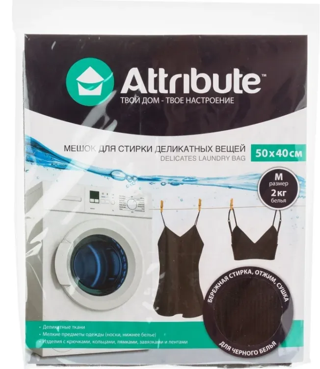 "Attribute" Мешок для стирки деликатных вещей 50х40см, цв.черный