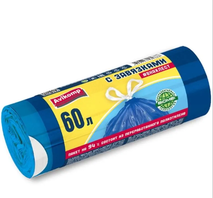 "AVIKOMP" Мешки для мусора особопроч. "Внахлест" с завязками 60л, 10шт. 25мкм