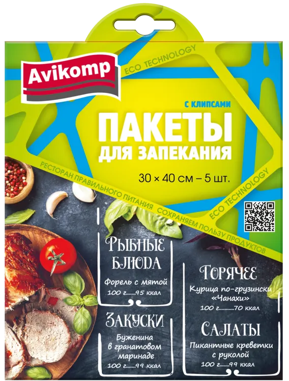 "AVIKOMP" Набор пакетов для запекания "Eco Technology" с клипсами 30х40см, 5шт.
