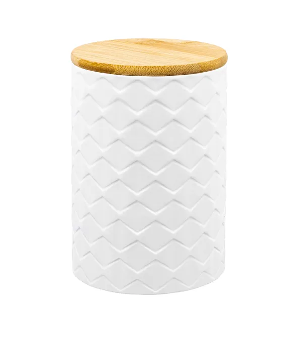 Банка для хранения "Аргайл" 1,1л с деревянной крышкой, цв.белый