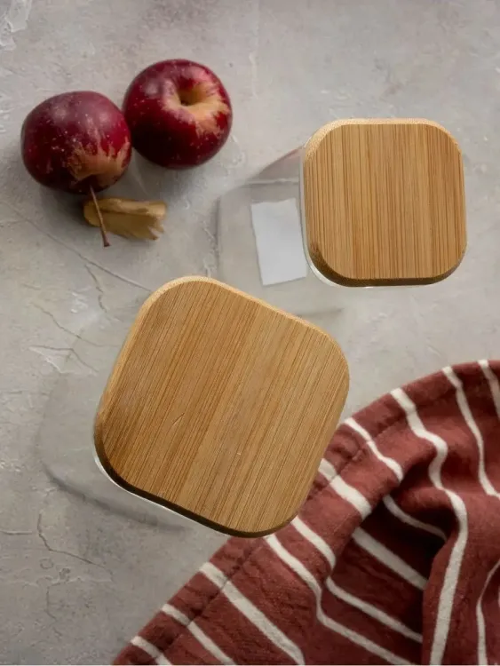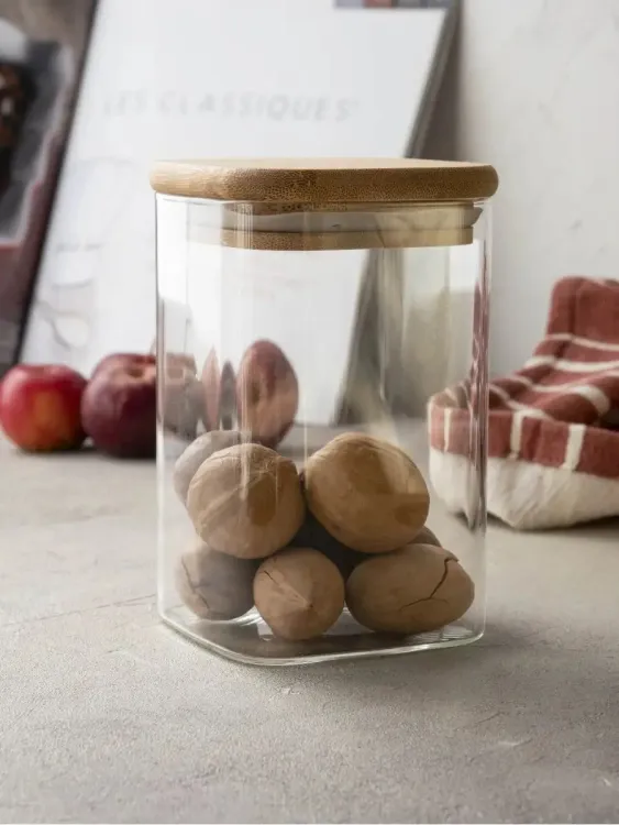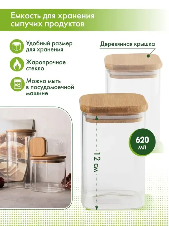 Банка для хранения дерев. крышка 620мл, h=12см, квадратная в п.у.