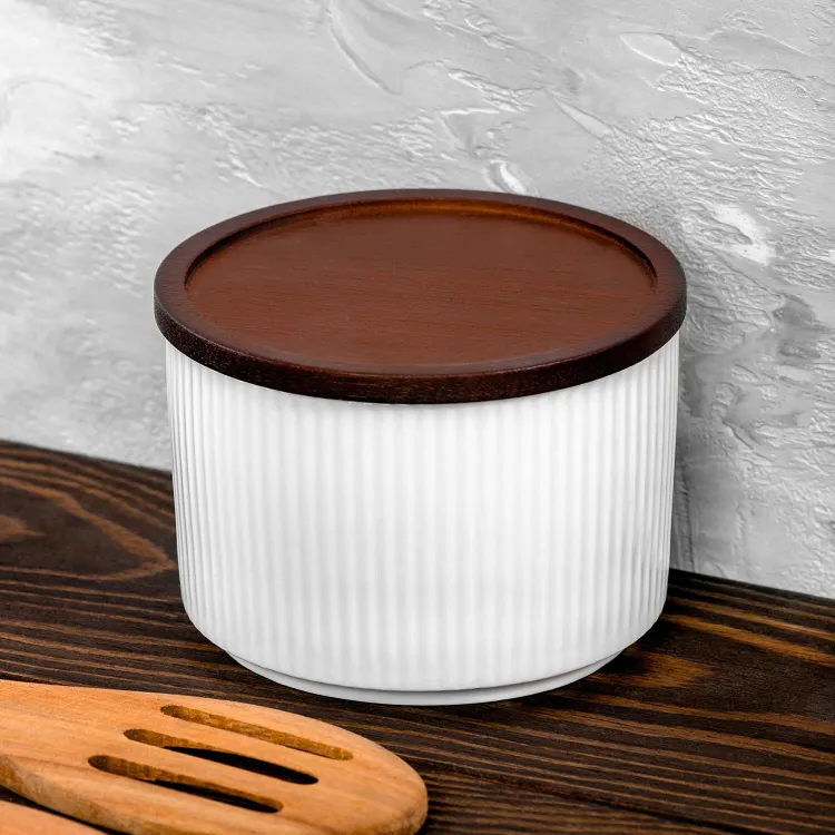 Банка для хранения "Полоски" 1л с деревянной крышкой, цв.белый