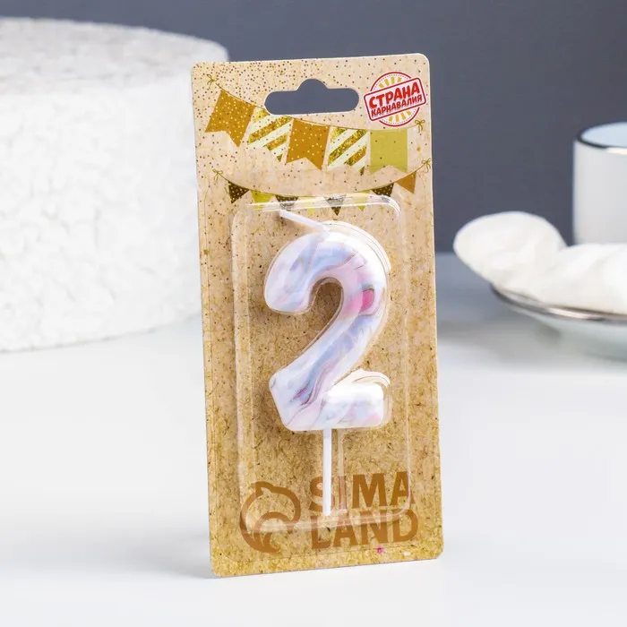 "Белый мрамор" Свечи для торта "Цифра 2"