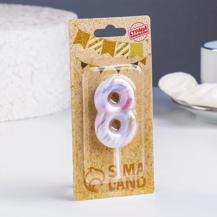 "Белый мрамор" Свечи для торта "Цифра 8"