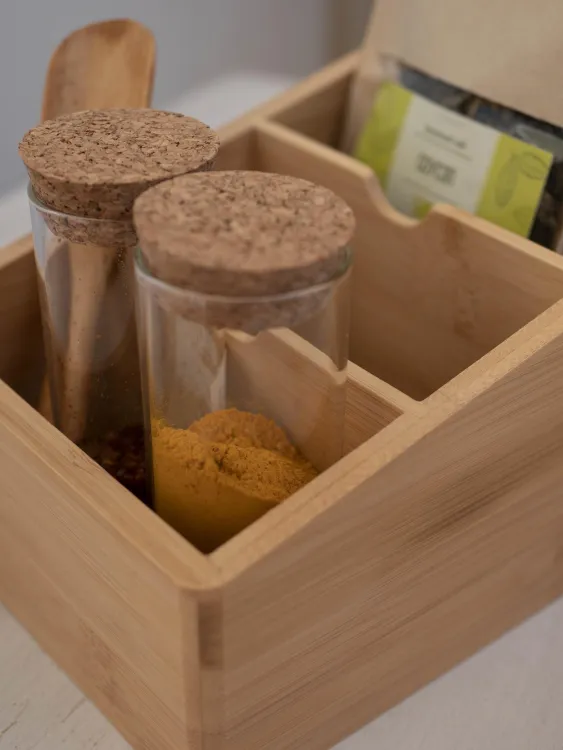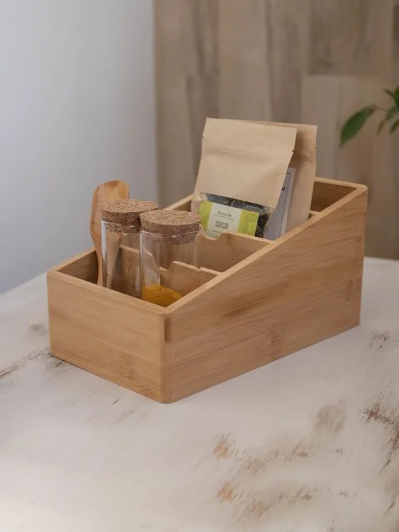Бамбуковый бокс для хранения специй на 4 секции — это идеальное решение для организации вашего пространства в стиле лофт. Изготовленный из экологически чистого дерева, этот органайзер отлично подходит для хранения специй, косметики, канцелярии и различных мелочей. Универсальный и многофункциональный, его можно использовать в шкафу, на полке или в ящике, обеспечивая удобный доступ к необходимым предметам.