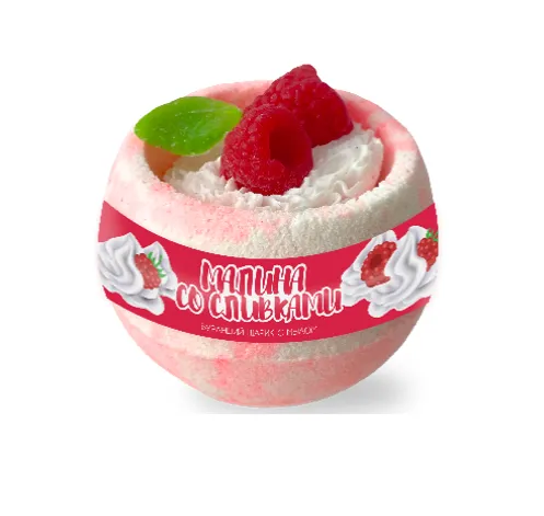 Бурлящий шар для ванны с солью "Малина со сливками " 200гр.