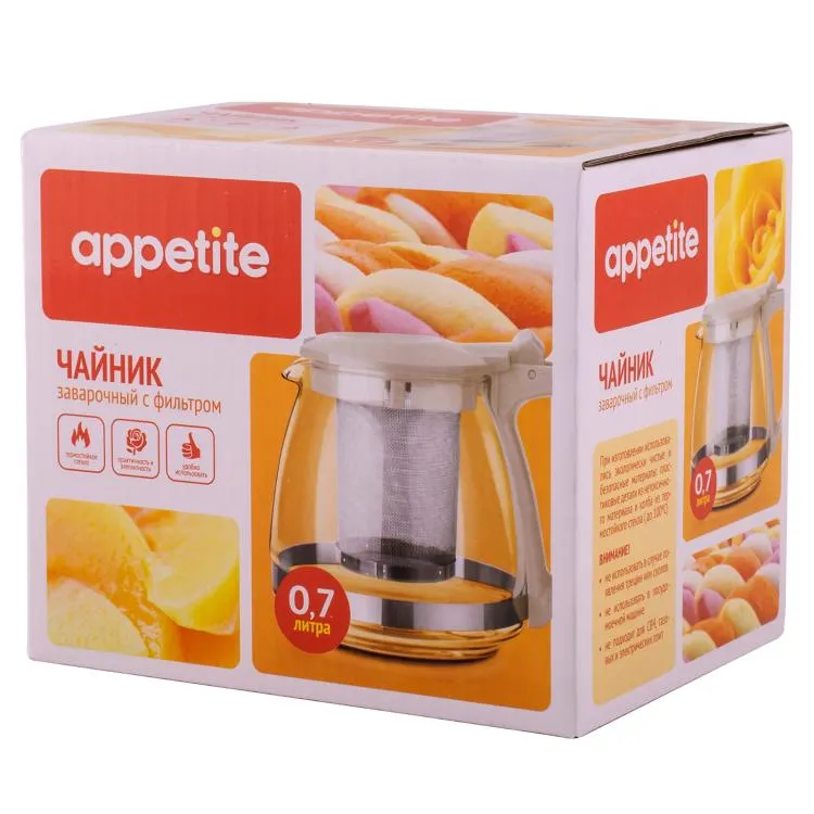 Чайник заварочный с металлическим фильтром 700мл цв.беж