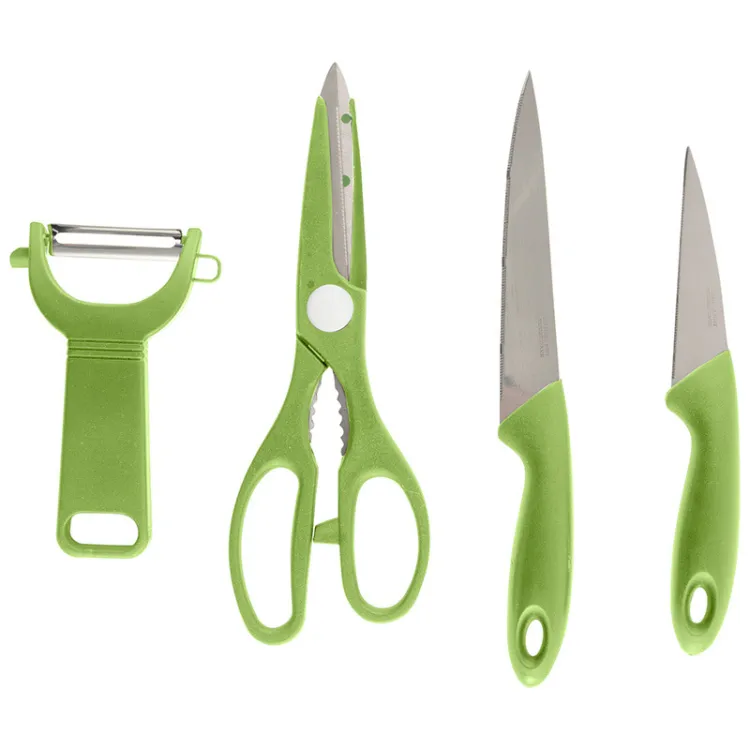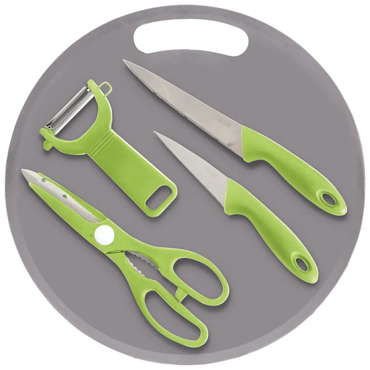 "CLASSICO" Набор: разделочная доска 30см, овощечистка, ножницы, нож 2шт., цв.зеленый