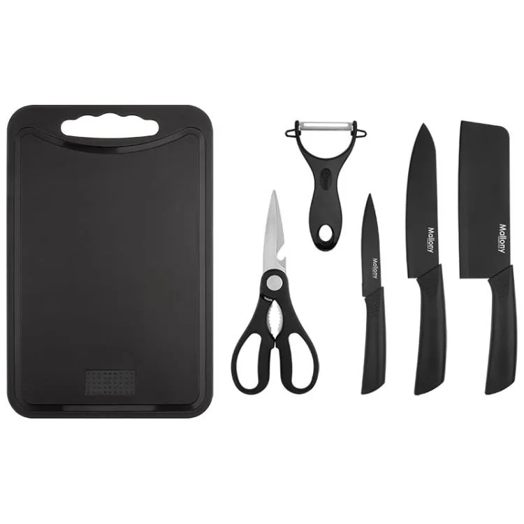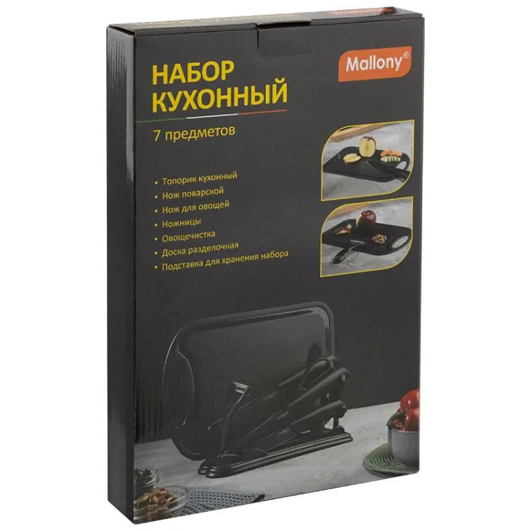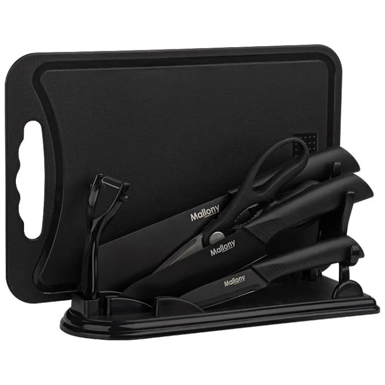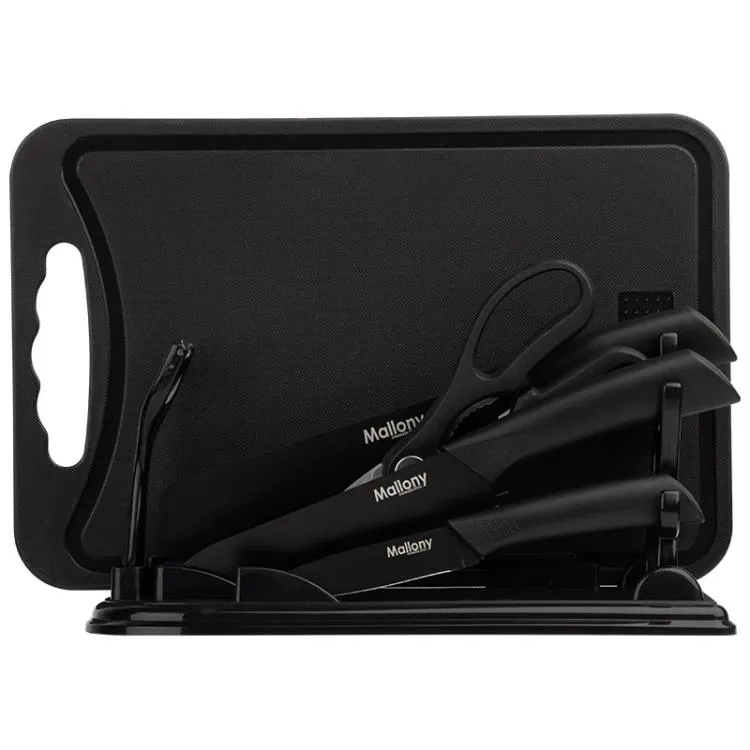 "COLTELLO NERO" Набор: разд.доска 32,5 см, овощечистка, ножницы, нож 3шт, цв.черный