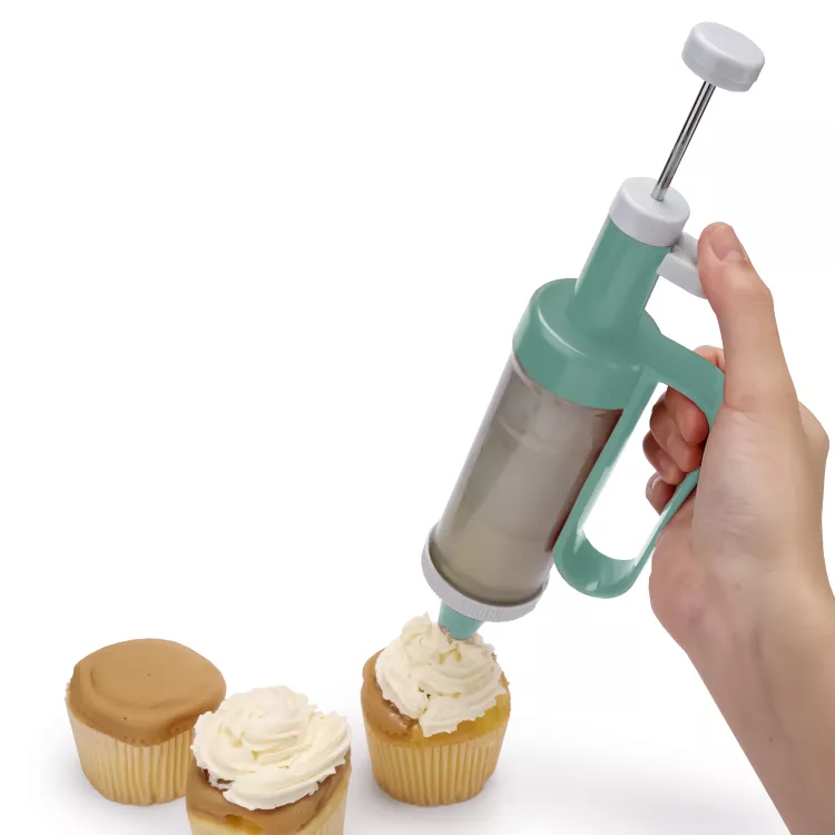 С помощью этого шприца вы сможете создавать фигурное оформление вашей выпечки в виде всяких узоров и орнаментов. Это замечательный способ добавить изящные детали на поверхность тортов и прочих сладостей. Благодаря имеющимся в наборе 6-ти насадкам, у вас появятся новые идеи для декорирования кремом или шоколадом.