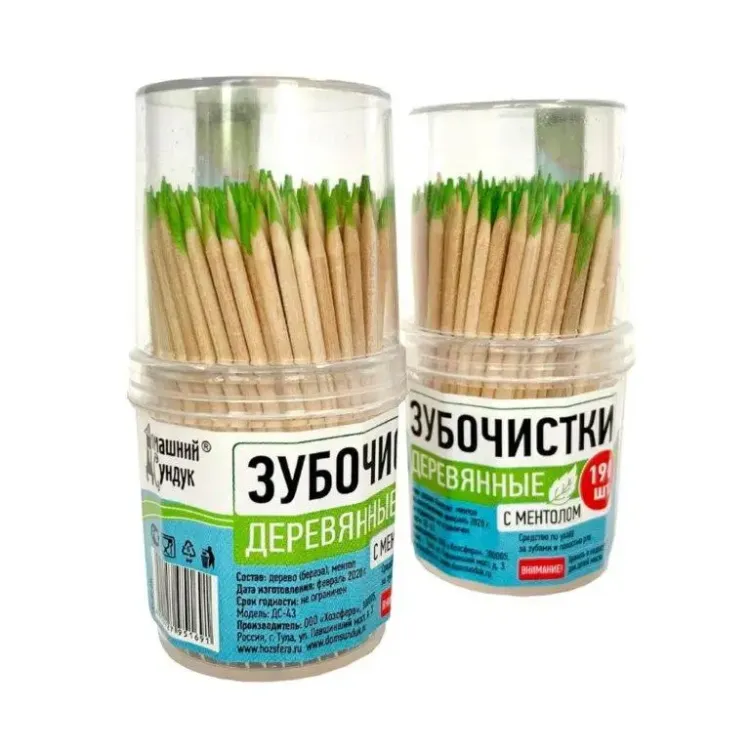 "Домашний Сундук" Зубочистки в баночке с ментолом 190шт.