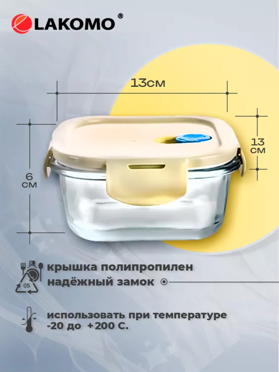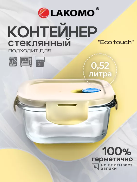 "Eco touch" Контейнер стекло 0,52л, квад. 13х13х6см