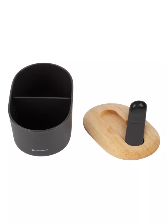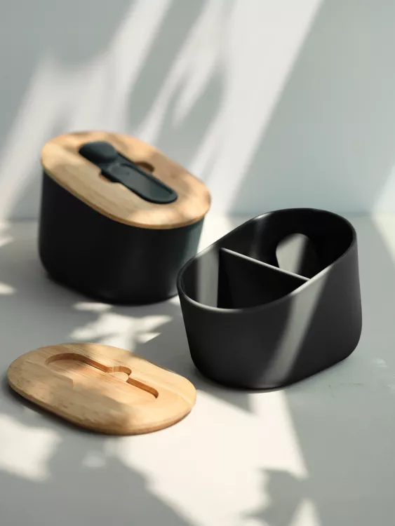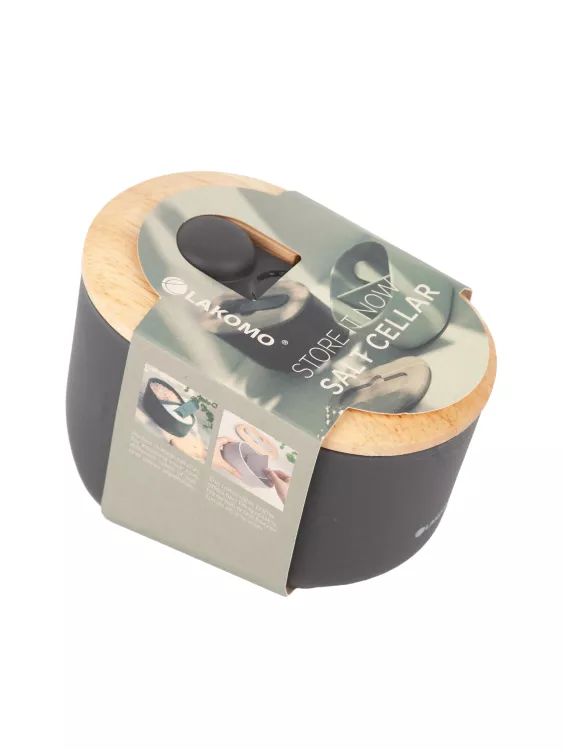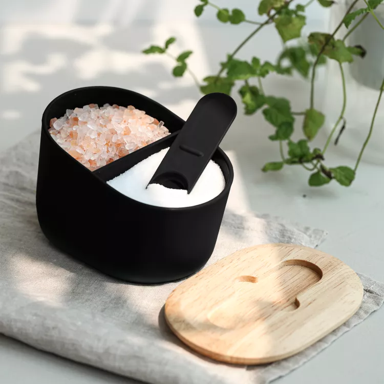 Емкость для хранения соли/специй с ложкой 330мл, 12х8х8,3см, цв.черный