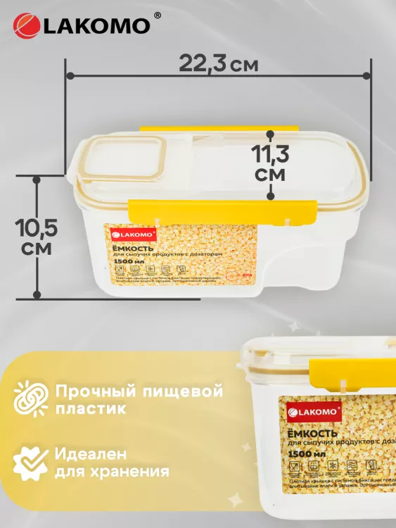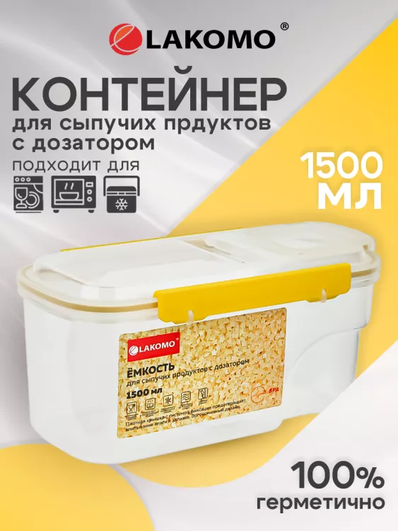 Емкость для сыпучих продуктов с дозатором 1,5л