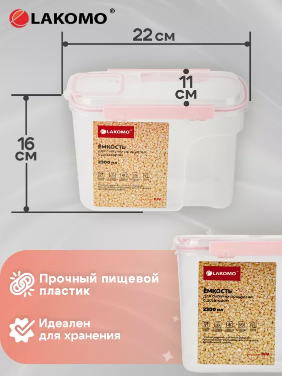 Емкость для сыпучих продуктов с дозатором 2,3л