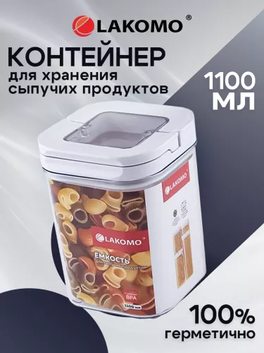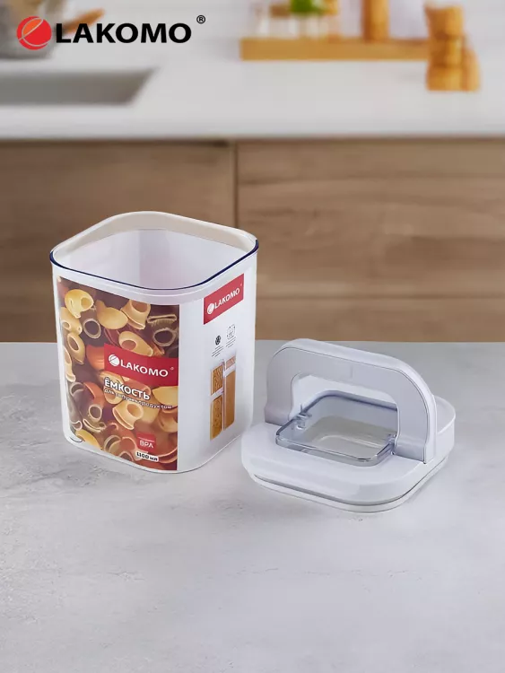 Емкость для сыпучих продуктов с ручкой 1,1л квад