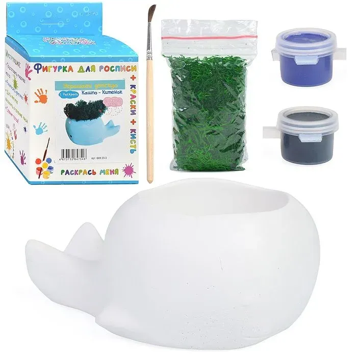 Фигурка-кашпо для раскрашивания "Китенок" с мхом 11,5х10х7,5см