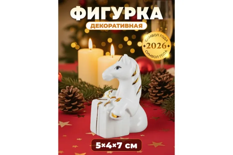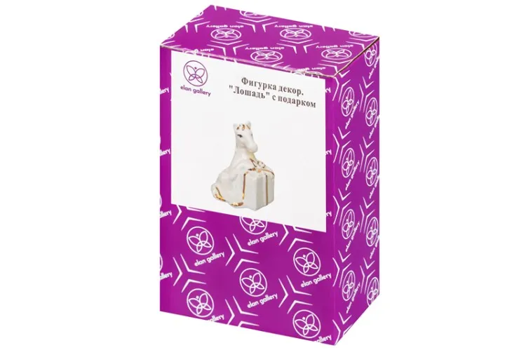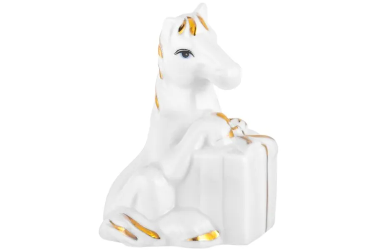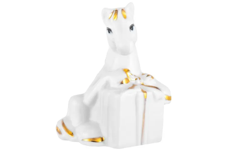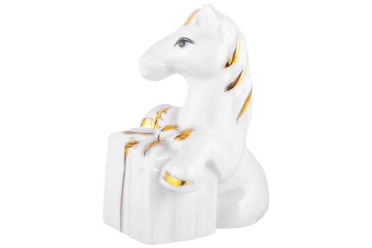 Фигурка "Лошадь с подарком" 7,5см, цв.белый