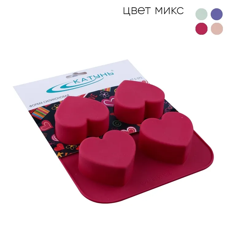Форма для выпечки 4 кексов "Сердца" 17х17х3см