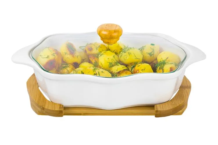 Форма для запекания "Айсберг" с дер.подст., стекл.крышкой 32х20х14см