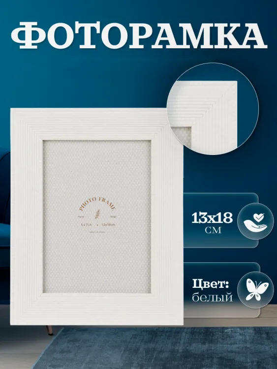 Фоторамка, окрашенная в белый цвет, обеспечивает плавный переход от картины к интерьеру, создавая гармоничный и стильный вид. Подходит для фото размером 13х18 см, она может быть использована как настольная, так и настенная, что делает её универсальной и удобной в использовании.